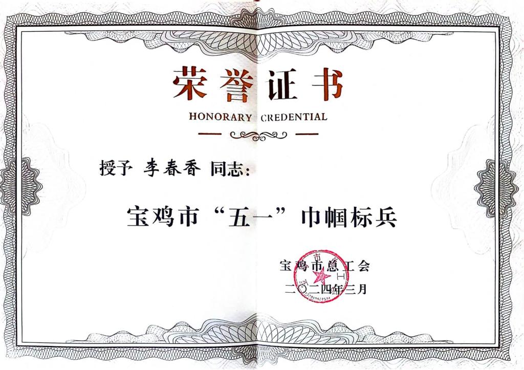 扎根一線 風(fēng)華無限||寶光股份李春香喜獲寶雞市“五一巾幗標(biāo)兵”榮譽(yù)稱號