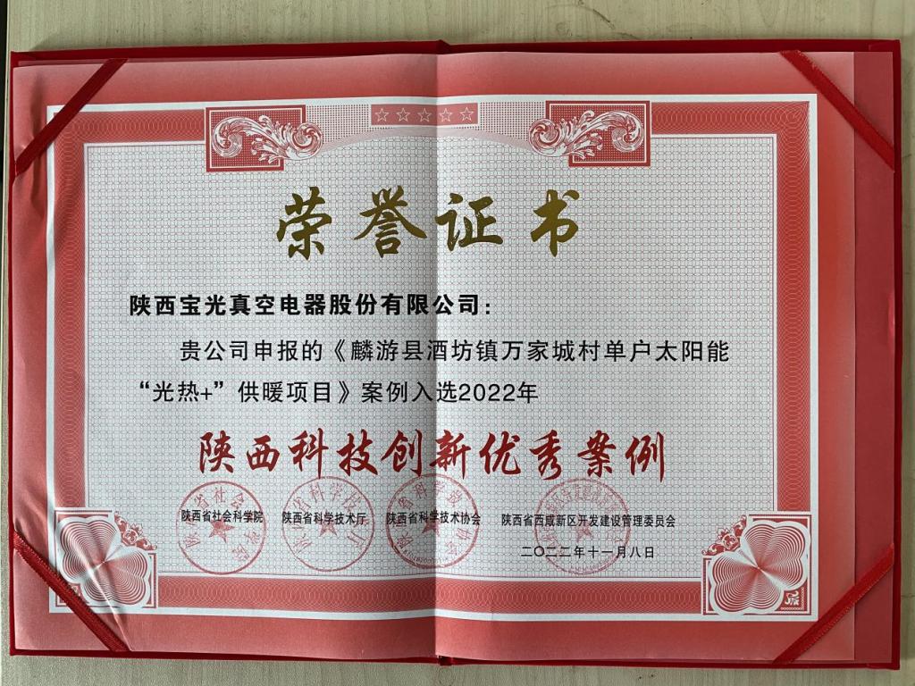 近日,陜西省社會(huì)科學(xué)院、陜西省科學(xué)技術(shù)廳、陜西省科學(xué)技術(shù)協(xié)會(huì)、陜西省西咸新區(qū)開(kāi)發(fā)建設(shè)管理委員會(huì)聯(lián)合發(fā)布“2022年陜西科技創(chuàng)新優(yōu)秀案例”,寶光股份申報(bào)的《麟游縣酒坊鎮(zhèn)萬(wàn)家城村單戶太陽(yáng)能“光熱+”供暖項(xiàng)目》成功獲選高效治理高品質(zhì)生活組“陜西科技創(chuàng)新優(yōu)秀案例”。