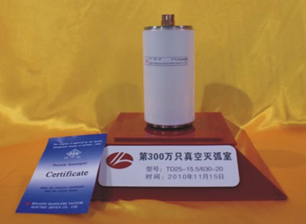 截止2014年,寶光牌真空滅弧室產(chǎn)銷量累計(jì)超過(guò)500萬(wàn)只,年生產(chǎn)能力超過(guò)60萬(wàn)只年出口真空滅弧室10萬(wàn)只。