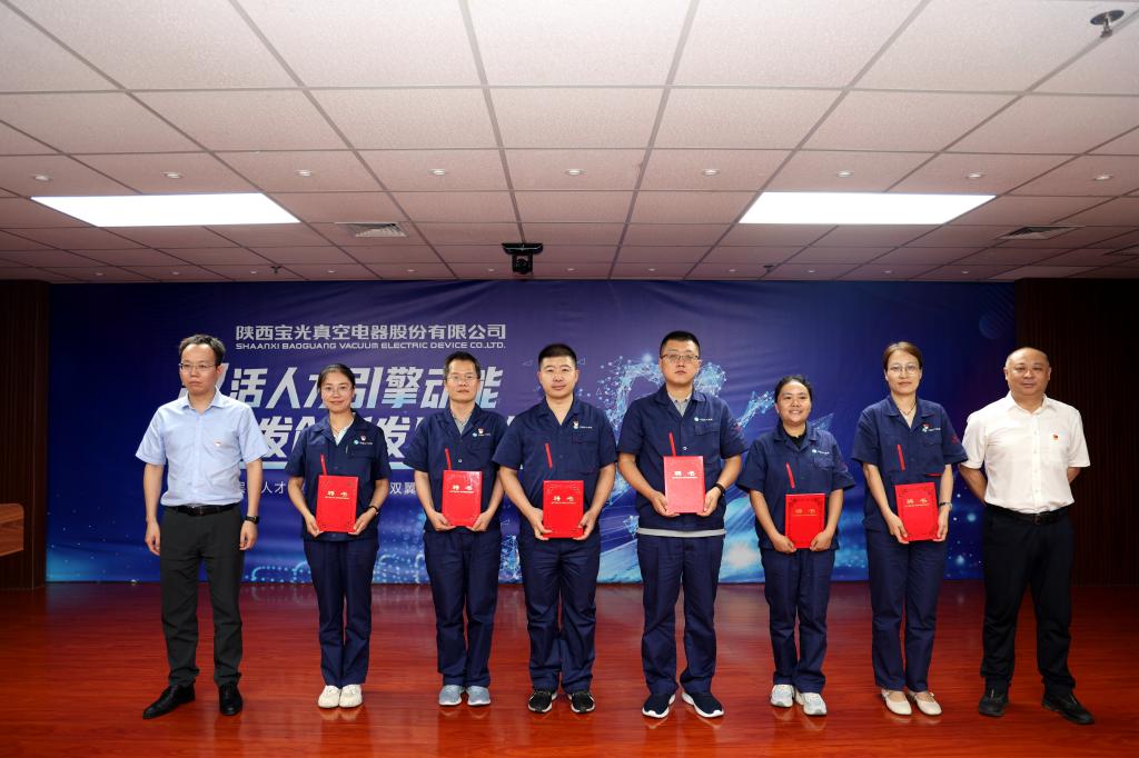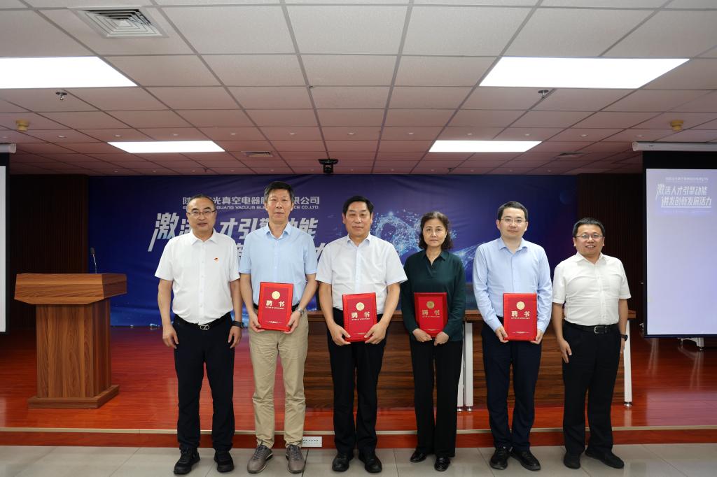 寶光股份紀委書記姚書勤,副總經(jīng)理袁軍為分別宣讀了高層次科技創(chuàng)新人才和重大創(chuàng)新團隊名單。謝洪濤為元復(fù)興、劉志遠、顏莉萍、馬慧4名外部專家頒發(fā)了聘書,組織簽訂了內(nèi)外部師帶徒協(xié)議。向高層次科技創(chuàng)新人才頒發(fā)了聘書,并與重大創(chuàng)新團隊負責(zé)人簽訂了定向支持承諾書,首批選取了變壓器有載分接開關(guān)真空滅弧室研發(fā)、252kV單斷口真空滅弧室研發(fā)、高電壓真空滅弧室研發(fā)、高可靠彈性元件研究四個項目做為重大創(chuàng)新項目進行專項激勵,與項目帶頭人簽訂了激勵任務(wù)書。外部專家的加入不僅為企業(yè)提供了強有力的智力支持,更能通過指導(dǎo)和交流激發(fā)企業(yè)內(nèi)在技術(shù)研發(fā)創(chuàng)新動力,這為高層次科技創(chuàng)新人才培養(yǎng)和重大創(chuàng)新團隊后期工作開展提供了方向引領(lǐng)和堅實技術(shù)支持保障。