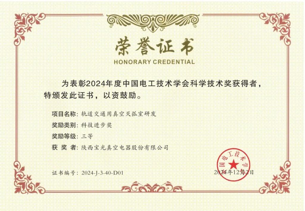 項(xiàng)目名稱:軌道交通用真空滅弧室研發(fā)。項(xiàng)目簡(jiǎn)介:本項(xiàng)目研發(fā)出的BGH2570、BGH2580、BGH2590/R、BGH2530等系列化產(chǎn)品,可替代進(jìn)口產(chǎn)品。4種產(chǎn)品全部通過了裝車運(yùn)行驗(yàn)證,部分產(chǎn)品實(shí)現(xiàn)了小批量供貨。其中BGH2570型產(chǎn)品于2023年9月通過了中國(guó)機(jī)械工業(yè)聯(lián)合會(huì)產(chǎn)品鑒定,技術(shù)水平達(dá)到國(guó)際領(lǐng)先。2021年至2024年累計(jì)銷量超過1000只,累計(jì)銷售額超過超過600萬元。