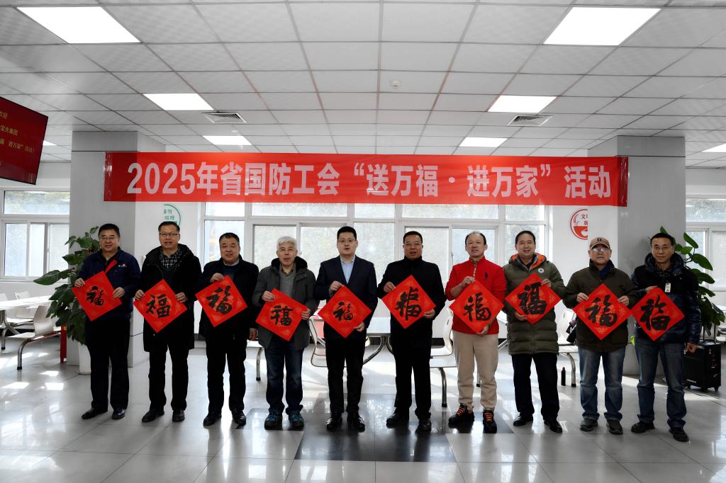 國防工會靳海斌副主席致辭,他表示“送溫暖”“送萬?!みM(jìn)萬家”是工會組織在重大節(jié)日向廣大職工送溫暖的重要內(nèi)容,福文化是中華民族的重要組成部分,是中華文化的價值理想和根本歸宿。今天邀請國防系統(tǒng)7位著名書法家為大家送春聯(lián)寫“?!弊郑脮愎P墨為職工朋友們送去新春的祝福和美好祝愿,也希望通過這種廣大職工喜聞樂見的形式切實把黨的關(guān)懷和溫暖送到廣大職工身邊,激發(fā)廣大職工的勞動熱情和創(chuàng)造熱情,增強(qiáng)實現(xiàn)中華民族偉大復(fù)興的精神力量。